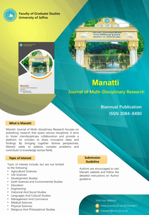 Address: Faculty of Graduate Studies, University of Jaffna, Palaly Road, Thirunelvely, Jaffna.